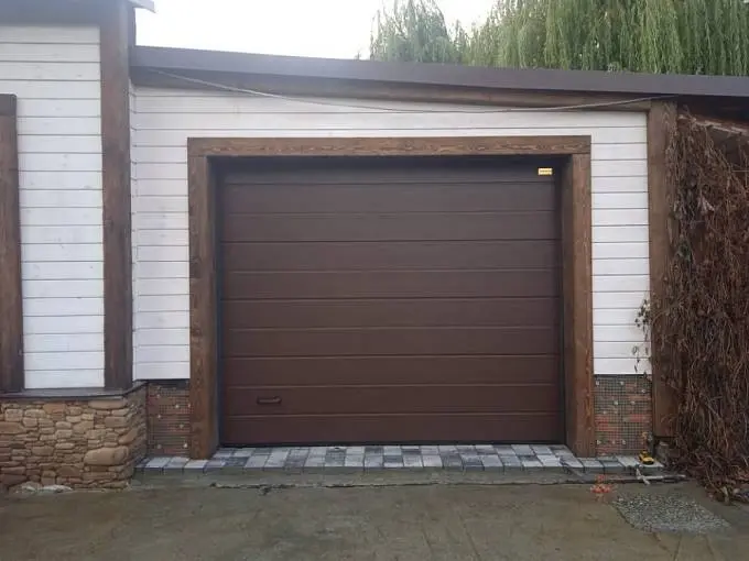 S-гофр, цвет темный дуб, с автоматическим управлением, торсионные пружины, с калиткой