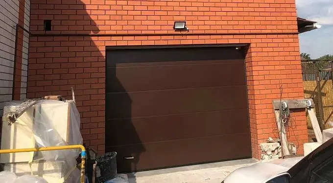 S-гофр цвета темный дуб, с автоматическим управлением, торсионные пружины, с калиткой