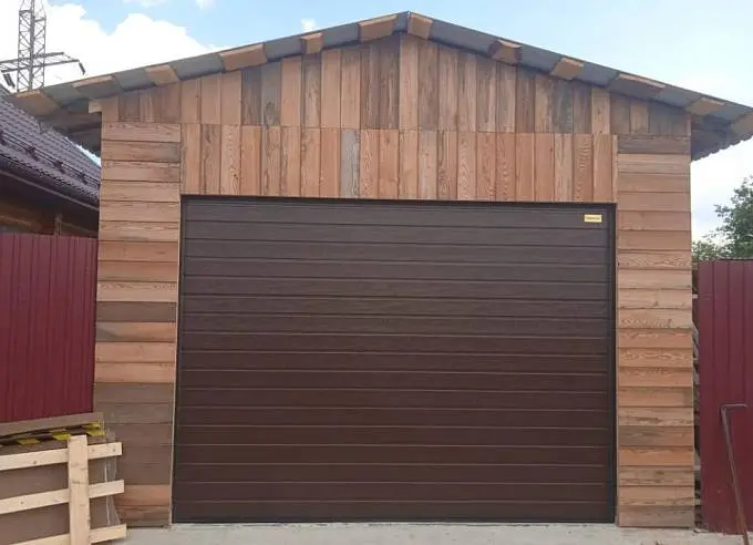 S-гофр, woodgrain, RAL 8017 (шоколадно-коричневый), с автоматическим управлением, пружины растяжения