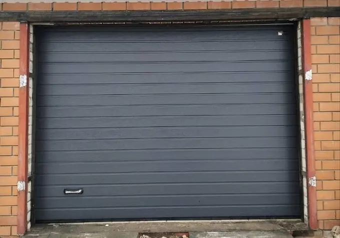 S-гофр цвета RAL9006 (серебристый металлик), с автоматическим управлением, торсионные пружины, с панорамным остеклением, с калиткой